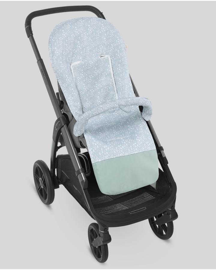 Colchoneta para sillas de paseo confeccionada en piqué estampado flora Cubre barra a juego y refuerzo de polipiel en los pies.